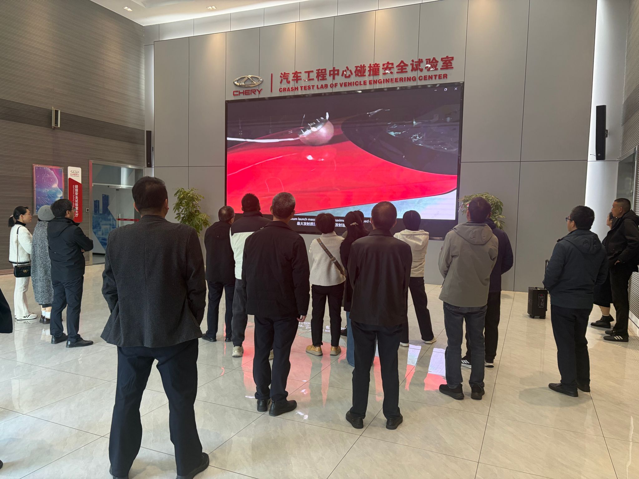 参加人员首先走进奇瑞智造一工厂总装车间,实地观摩智能机械臂精准高效地完成座椅、仪表盘、轮胎等关键部件的装配流程,以及整车出厂前的各项检测环节。随后,大家前往奇瑞汽车工程中心碰撞安全试验室,深入了解车辆安全防护技术与人工智能预警系统的研发应用情况。
